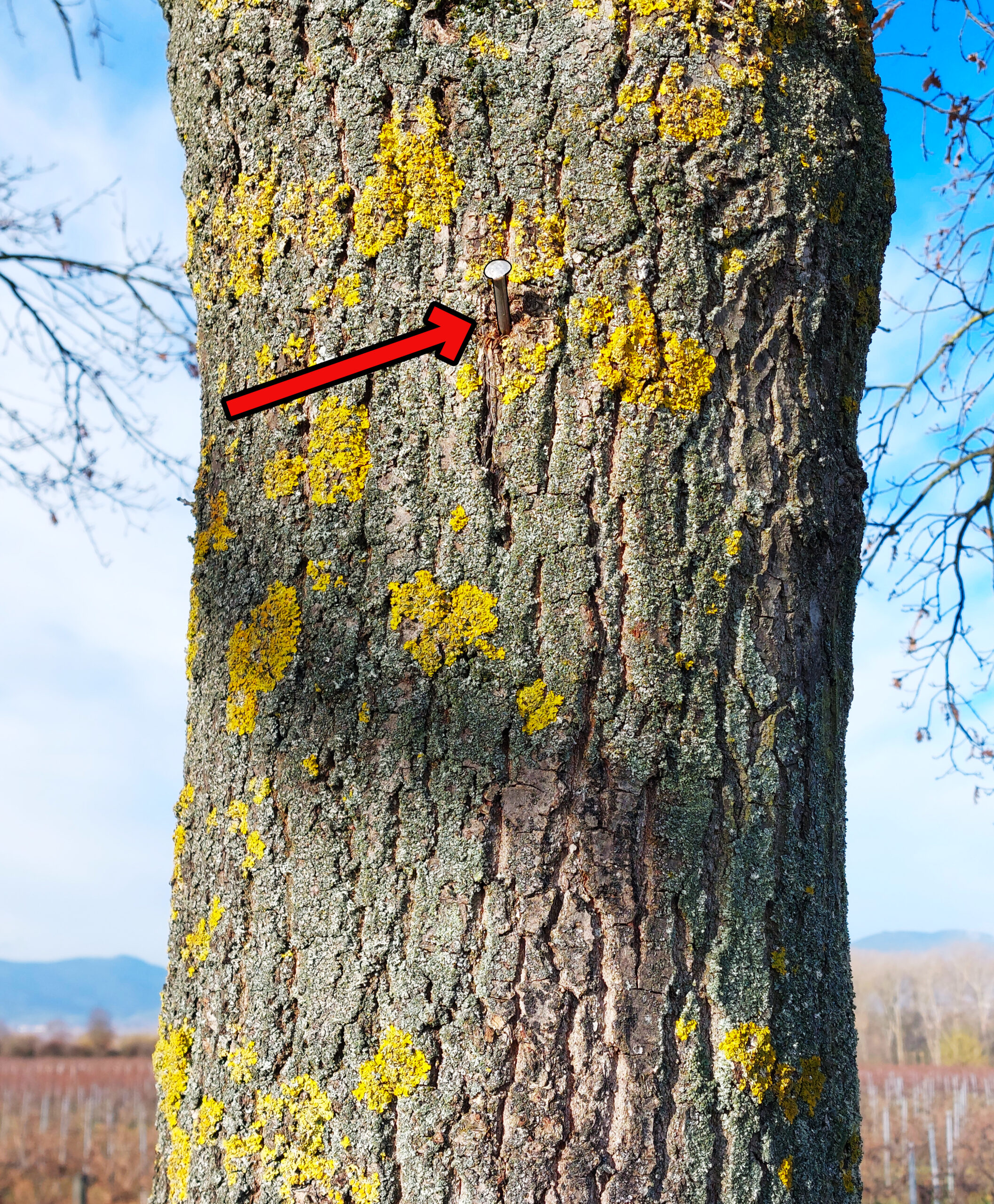 Nur der Nagel ist noch da, der Kasten ist weg.