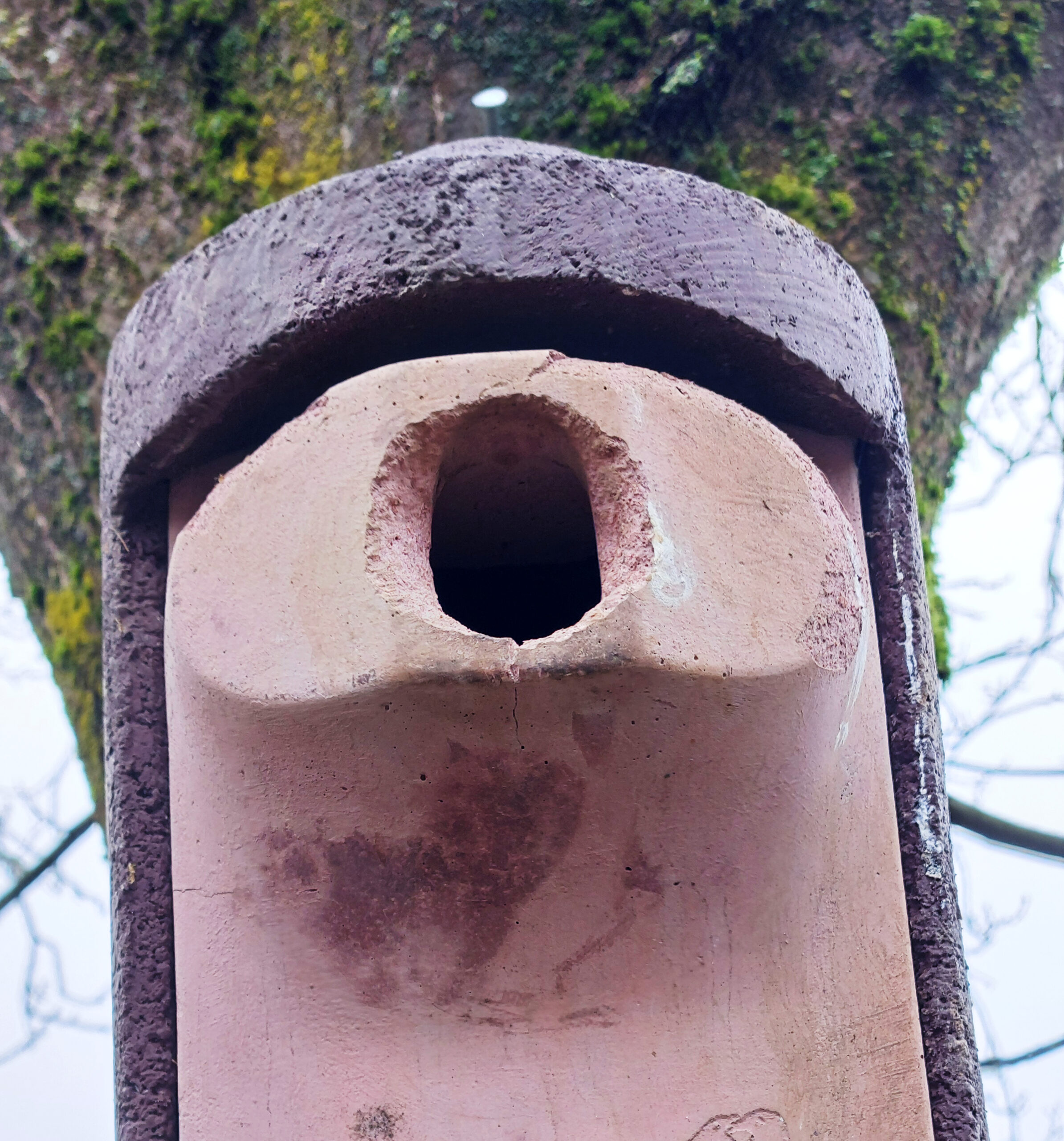 An diesem Kasten hat sich ein Buntspecht vergeblich als Steinmetz versucht.